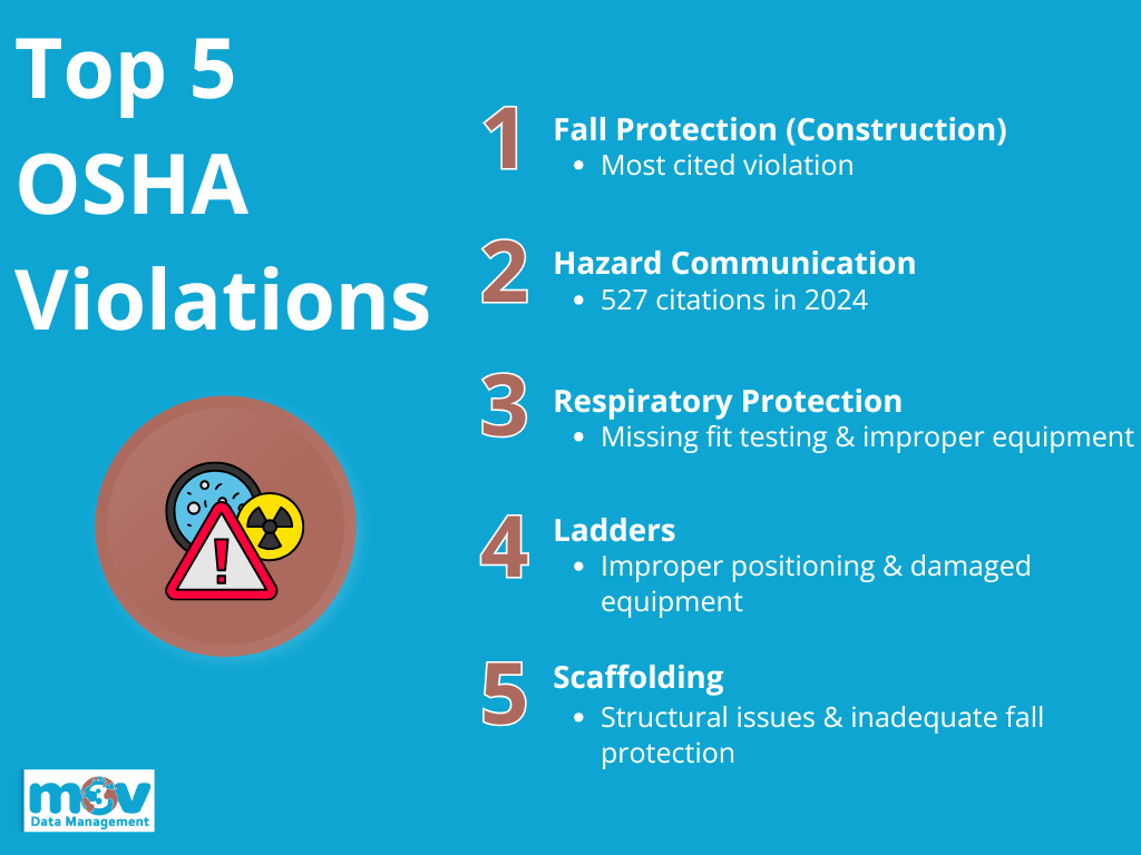 The top 5 workplace safety violations that consistently lead OSHA citations are: